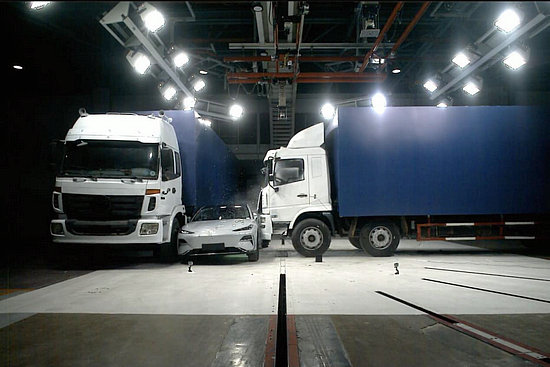 近日,吉利銀河 E8 成功挑戰(zhàn)了 20 噸失控重卡夾擊“魔鬼碰”。這項測試難度頗高,純電+側碰+2輛重卡雙側夾擊疊加,能量沖擊是國標的 3。3倍,試驗條件十分嚴苛。