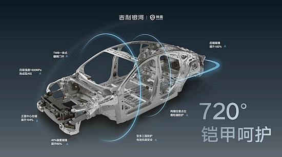 其中,全新一代神盾電池安全系統(tǒng)為銀河 E8 創(chuàng)造了一整套從電池到架構、整車、智控、云端的四層“無盲區(qū)”安全防護系統(tǒng)。SEA原生智能純電架構以“全域安全理念”作為安全基準,守護被動安全、主動安全、功能安全、信息安全、高壓安全、防火安全、健康安全、使用安全、防盜安全共9項系統(tǒng)安全,基于SEA 架構所打造的吉利銀河 E8也成為新一代高安全性能的純電旗艦車型。