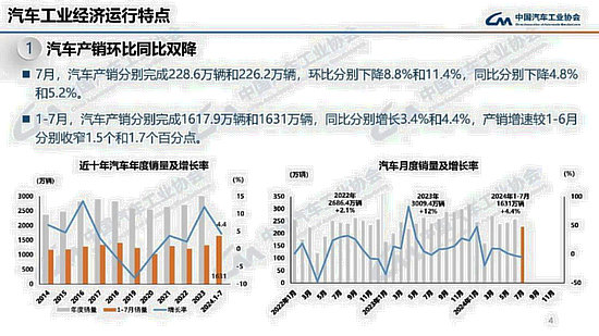 同時(shí),中汽協(xié)發(fā)布今年以來(lái)的汽車產(chǎn)銷情況顯示,1-7月,汽車產(chǎn)銷分別完成1617.9萬(wàn)輛和1631萬(wàn)輛,同比分別增長(zhǎng)3.4%和4.4%。