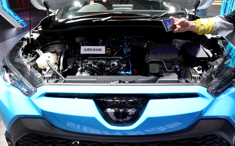 ?。ㄙY料圖片)豐田汽車公司在2023年上海國際車展展出的氫能源汽車的發(fā)動機(jī)。新華社記者 陳建力 攝