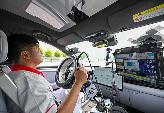 一輛智能網(wǎng)聯(lián)汽車正在做測試(6月19日攝)。新華社記者 孫凡越 攝