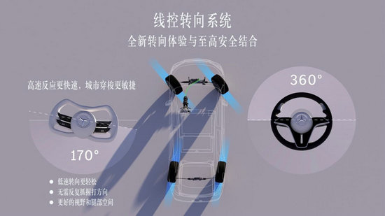 憑借線控轉(zhuǎn)向技術(shù),梅賽德斯-奔馳實(shí)現(xiàn)了全新轉(zhuǎn)向體驗(yàn)與至高安全的結(jié)合。對于Vision Iconic概念車這類較長的車型,該技術(shù)的優(yōu)勢愈發(fā)凸顯,特別是在搭配后輪主動(dòng)轉(zhuǎn)向系統(tǒng)后,既可以大幅提升操控性,也能讓機(jī)動(dòng)性與泊車便利性顯著提高。這是因?yàn)榫€控轉(zhuǎn)向可進(jìn)一步降低轉(zhuǎn)向力度,并且在泊車時(shí)不需要反復(fù)抓握方向盤。該技術(shù)無需在方向盤與前輪之間建立機(jī)械連接,駕駛員的轉(zhuǎn)向請求可通過控制單元與執(zhí)行器快速、直接地傳遞給車輪。