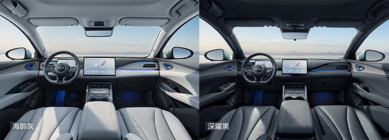 新車共提供沁海綠、暖色煙茶、亞特蘭蒂斯灰、雪域白4款外觀配色,以及深曜黑與海韻灰兩種內飾可選,契合用戶多元審美。內飾同樣延續(xù)海洋美學簡約、靈動的風格特點,儀表臺兩側采用科技布皮質紋理,觸感溫潤親膚,耐用易清潔,兼具品質美感與實用性。