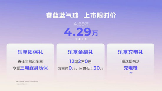 同時,睿藍藍氣球在上市之際也推出多重驚喜好禮,涵蓋首任非營運車主享受三電終身質保、12期2萬0息或首付0元,日供低至30元金融禮、贈送1把便攜式充電槍,進一步減輕用戶擁車壓力。即日起,消費者可通過睿藍汽車官方APP、小程序或授權經銷商渠道了解詳情、預約試駕,并可享首批車主專屬禮遇。
