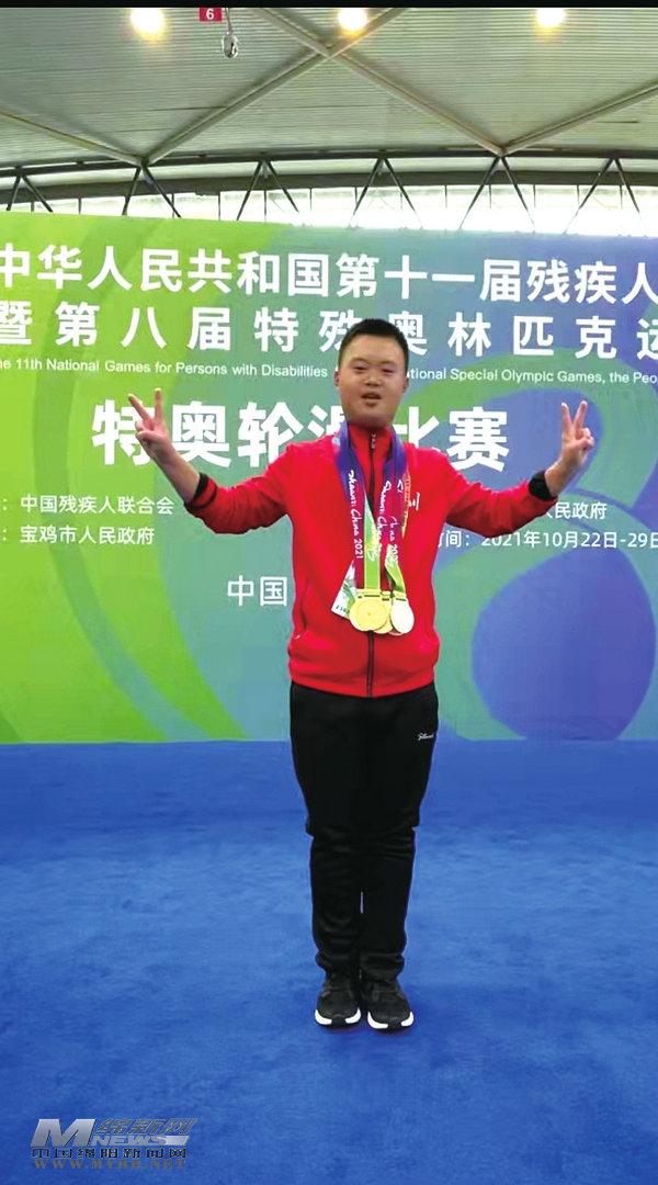 緱海洋在第八屆特殊奧林匹克運(yùn)動(dòng)會(huì)上領(lǐng)獎(jiǎng)