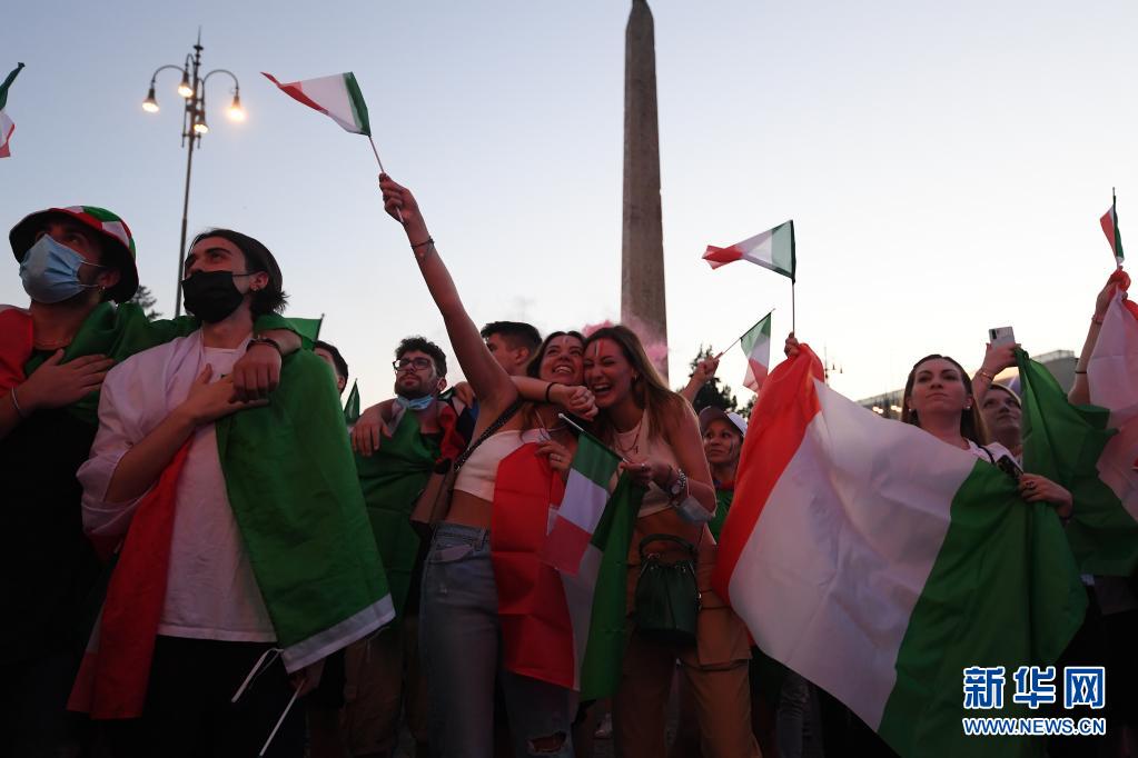 7月6日,意大利球迷在羅馬慶祝意大利隊晉級決賽。