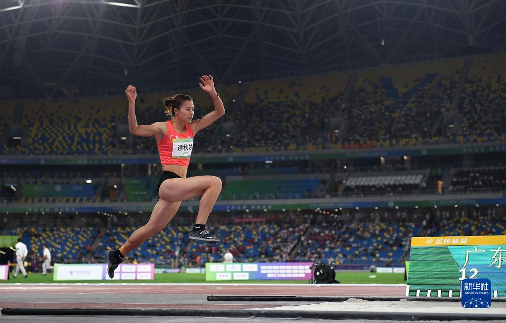 9月21日,廣東隊選手譚秋嬌在比賽中,她以14.34米的成績獲得冠軍。