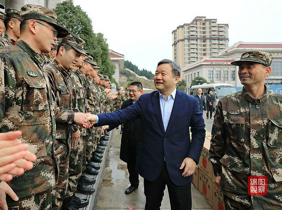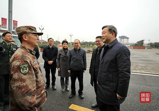 曹立軍一行先后來到77123部隊(duì)、武警綿陽支隊(duì)、武警第二機(jī)動總隊(duì)某支隊(duì)、綿陽軍分區(qū)等地,詳細(xì)了解駐綿部隊(duì)歷史沿革和官兵訓(xùn)練、學(xué)習(xí)、生活等情況,聽取部隊(duì)建設(shè)情況介紹和深化雙擁共建的意見建議,并向他們送上新春美好祝福。曹立軍說,去年以來,面對復(fù)雜嚴(yán)峻的外部環(huán)境和疫情災(zāi)情影響,軍地團(tuán)結(jié)一心,推動綿陽各項(xiàng)事業(yè)發(fā)展邁上新臺階,實(shí)現(xiàn)“十四五”良好開局。這些成績的取得,離不開駐綿部隊(duì)的大力支持。一年來,駐綿部隊(duì)堅(jiān)持以習(xí)近平強(qiáng)軍思想為指導(dǎo),聚焦新時(shí)代強(qiáng)軍目標(biāo),深入推進(jìn)政治建軍、改革強(qiáng)軍、科技強(qiáng)軍、人才強(qiáng)軍、依法治軍,在完成軍事任務(wù)的同時(shí),把駐地當(dāng)故鄉(xiāng)、視人民為親人,在搶險(xiǎn)救災(zāi)、抗擊疫情、鄉(xiāng)村振興、應(yīng)急救援等工作任務(wù)中沖鋒在前、勇挑重?fù)?dān),為綿陽經(jīng)濟(jì)社會發(fā)展作出了重要貢獻(xiàn)。