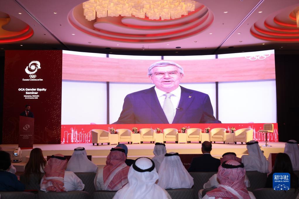 10月30日,由亞洲奧林匹克理事會(huì)(以下簡(jiǎn)稱亞奧理事會(huì))主辦的性別平等研討會(huì)在巴林首都麥納麥開幕。國際奧委會(huì)主席托馬斯·巴赫在開幕式視頻致辭中,稱贊亞奧理事會(huì)在大力推動(dòng)亞洲性別平等方面做出了表率。新華社記者 王海洲 攝