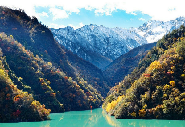 大紅、金黃、橙黃、墨綠、淺藍……時入深秋,平武的林濤樹海層林盡染,從谷底到山巔,千樹萬葉將躍動的生命燃燒,留下最絢麗的身影,雪山彩林交相輝映;彩林湖泊浮光掠影,一派“樹樹皆秋色,山山似落暉”的壯美景觀。連日來,記者深入白馬山寨、高村鄉(xiāng)老河溝、黃羊關藏族鄉(xiāng)探訪彩林之美,領略自然之妙。