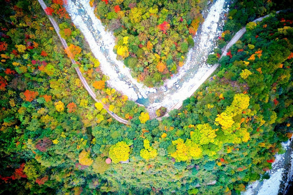 沿著九環(huán)東線,順著火溪河逆流而上,只見河流兩岸層林盡染,漫山遍野都是紅葉和彩林,放眼望去,紅、黃、紫、綠等色彩錯雜其間,美麗至極。這是一條80余公里長的紅葉彩林走廊,其間有雪山、有湖泊、有古寨、有白馬風情,這里遠離塵囂,空氣清新,目之所及五彩繽紛,呈現(xiàn)出層林盡染的秋日美景。