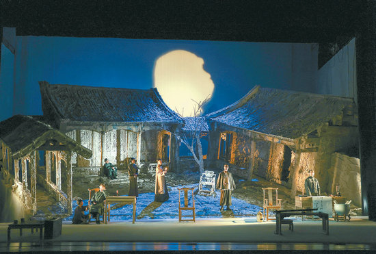 如果說,劇作家的非凡在于以深刻的洞察“將一個(gè)時(shí)代最本質(zhì)、最疼痛的問題,化作象征性形象之間直接的精神沖突,拋卻末節(jié)而切中要害地,襲擊并擁抱讀者、觀眾的心”,那么,導(dǎo)演的杰出則在于將這一切以獨(dú)特的舞臺(tái)美學(xué)淋漓呈現(xiàn)的同時(shí),還敏銳地為劇作注入當(dāng)下的因子,豐富并深化劇作的生命價(jià)值,使之在不斷的新生中永續(xù)。而這一超越性的精神探索與努力,尖銳而詩意地彌漫于《北京人》的舞臺(tái)時(shí)空里,激活心靈的觸角,使我們得以觸摸歷史與時(shí)間的褶皺里隱藏的暗影,在心靈的自由中,迎向光之所在。