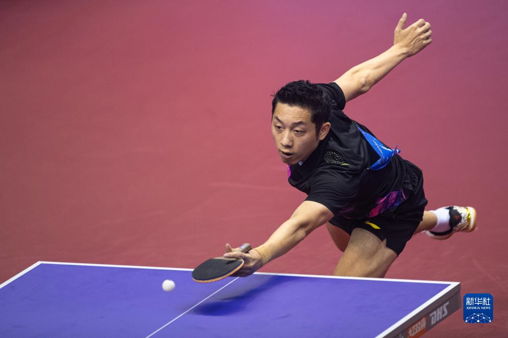 11月3日,上海地產(chǎn)集團(tuán)隊(duì)球員許昕在比賽中回球。許昕在男子團(tuán)體首輪比賽中以3比0戰(zhàn)勝廣西隊(duì)選手謝昀熹。新華社記者 肖藝九 攝