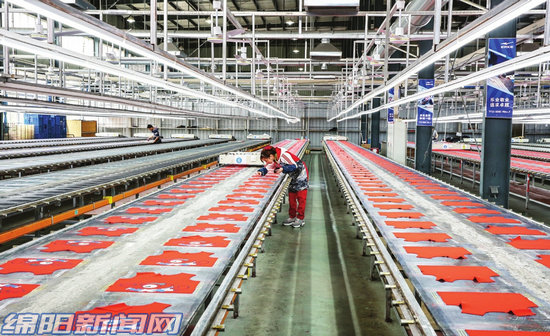 在青東壩工業(yè)區(qū)的三臺(tái)鞋服產(chǎn)業(yè)園,四川安吉納體育用品有限公司針車車間里,10多條生產(chǎn)線正有條不紊運(yùn)轉(zhuǎn),經(jīng)過(guò)拼縫、貼舌棉等29道工序后,一道鞋面工藝制作完成。該公司占地4.5畝,總投資達(dá)3.5億元,是一家綜合性體育運(yùn)動(dòng)裝備制造企業(yè),主要生產(chǎn)專業(yè)足球鞋、運(yùn)動(dòng)鞋等,年產(chǎn)成品鞋可達(dá)600萬(wàn)雙。