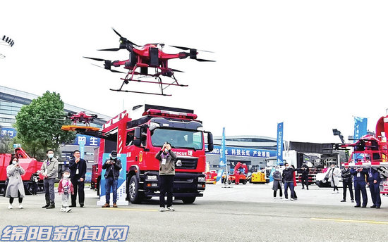 綿陽新聞網(wǎng)訊 在第十屆科博會室外展區(qū),眾多高精尖消防救援裝備中,綿陽市消防救援支隊(duì)展出的車載滅火無人機(jī)備受關(guān)注。