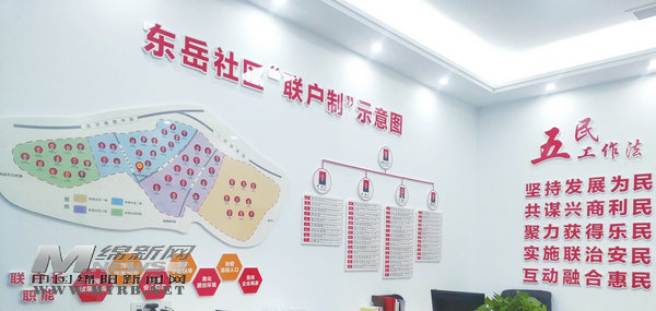 走進(jìn)東岳社區(qū)黨群服務(wù)中心紅色工作室,只見潔白的墻上用紅色標(biāo)注的“聯(lián)戶制”示意圖格外醒目。記者從示意圖上看到,“聯(lián)戶長”們的職責(zé)職能,以及所管轄范圍一目了然。