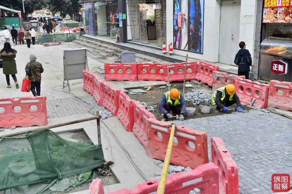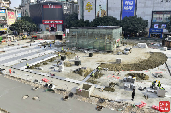 興力達廣場及其周邊街區(qū)道路是我市綿州記憶旅游基礎設施提質升級建設項目的重要內(nèi)容。記者在現(xiàn)場看到,廣場上數(shù)十位工人正忙著運料、鋪裝,中心地帶的路面鋪設正在火熱施工中,另一條改造后的新道路已經(jīng)接近完工。廣場一側,一臺破碎機對老舊路面展開破碎作業(yè),幾天后,即可舊貌換新顏。在公園路上的施工點,工人們分別拿著木錘或橡膠錘,對新鋪的撲克牌大小的防滑地磚敲敲打打,地磚之間留出的均勻縫隙能夠起到雨天滲水的作用。在施工點周圍,多家美食店都在正常營業(yè),一些服裝店正在忙著補貨。