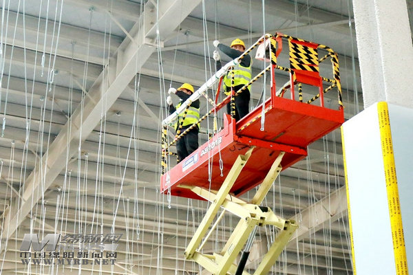 在項(xiàng)目一期廠房裝修現(xiàn)場(chǎng),記者看到,各類車間廠房正在快速拼接成型,一臺(tái)臺(tái)輔助機(jī)械搭載著工人或上下、或往來(lái)穿梭,近百名工人正在工地上奮力施工。