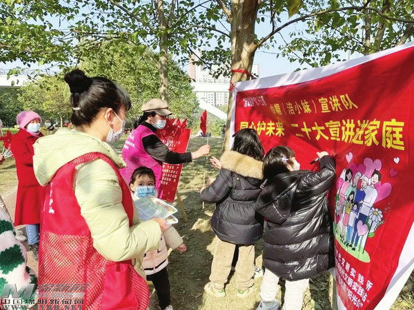 活動(dòng)現(xiàn)場(chǎng),志愿者們通過有獎(jiǎng)提問、游戲互動(dòng)等形式將二十大報(bào)告中關(guān)于家庭教育和保障兒童合法權(quán)益的論述轉(zhuǎn)換成一句句接地氣的“大白話”。寓教于樂,繪聲繪色的講述,吸引市民駐足參與,現(xiàn)場(chǎng)氣氛活躍。