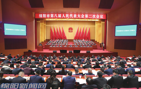 2月17日,市八屆人大二次會議開幕。(綿陽日報(bào)社融媒體記者張莉 攝)