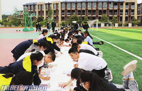 活動(dòng)現(xiàn)場(chǎng),100余名學(xué)生圍坐在百米巨幅畫卷旁,緊扣活動(dòng)主題,結(jié)合學(xué)習(xí)、思想、生活實(shí)際,大膽構(gòu)思、自由創(chuàng)作,生動(dòng)描繪著偉大祖國(guó)、偉大時(shí)代、偉大夢(mèng)想、大美北川的絢麗圖景,深情表達(dá)對(duì)黨、祖國(guó)、人民和家鄉(xiāng)的無(wú)限熱愛,由衷詮釋著“強(qiáng)國(guó)復(fù)興有我”的強(qiáng)烈心聲。(席婷 宋林 綿報(bào)融媒記者 楊檎 文/圖)