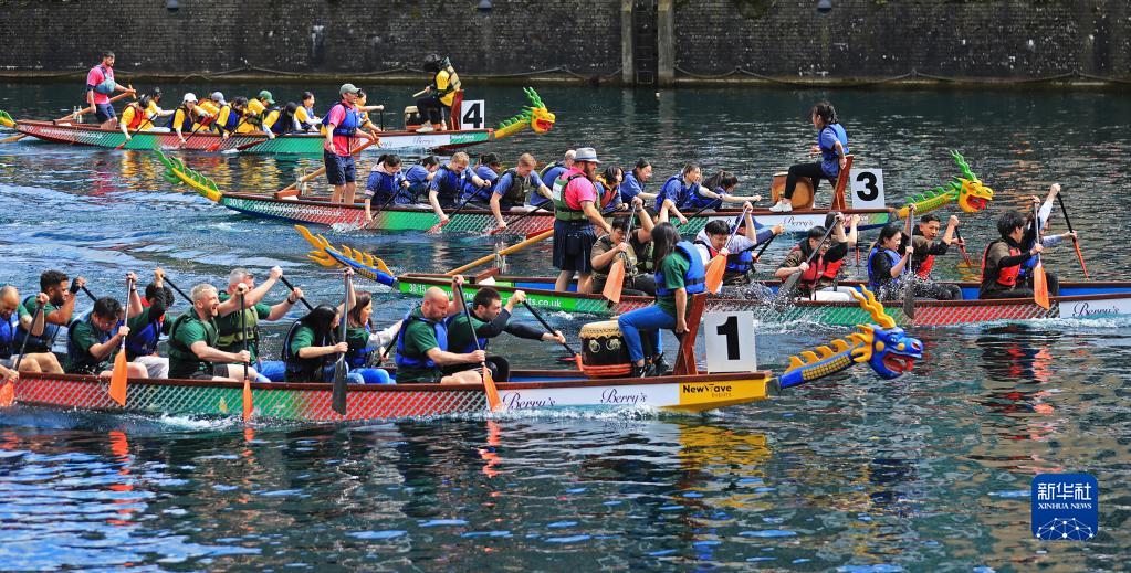 當日,“2022全英中華端午龍舟會”在英國索爾福德市的古運河上舉行,來自英國各地的36支龍舟隊參加角逐。除了龍舟比賽,活動現(xiàn)場還組織了功夫表演、舞龍舞獅、傳統(tǒng)舞蹈、書法展示等具有中國特色的節(jié)目,多方位展示中華傳統(tǒng)文化。