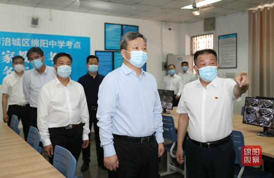 綿陽中學(xué)今年設(shè)高考考場145個、中考考場100個,將迎來7000余名考生。曹立軍走進考務(wù)辦公室、食堂、防疫物資儲備室、廣播室等處,詳細詢問學(xué)校備考督查、疫情防控、食品安全等情況。他強調(diào),要認真做好考場設(shè)置、考點消毒、醫(yī)療保障、食品安全等工作,細致做好考生考前輔導(dǎo)、心理疏導(dǎo)及健康監(jiān)測,確保考生科學(xué)備考、健康參考、從容應(yīng)考。