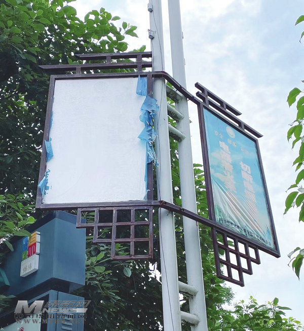 杏壇南路上,設(shè)置在路燈上的公益廣告牌經(jīng)過長時(shí)間日曬雨淋,有的字跡已看不清,形同虛設(shè)。據(jù)附近居民介紹,最初整條街每個(gè)路燈上都有公益標(biāo)語,但有些壞了后一直未進(jìn)行更換修理。