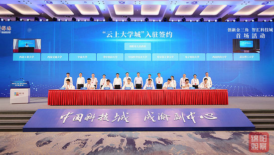 隨后,舉行了簽約儀式,綿陽(yáng)市政府及有關(guān)方面分別就“云上大學(xué)城”入駐、區(qū)域合作及“招院引所”項(xiàng)目、創(chuàng)新平臺(tái)等簽約。