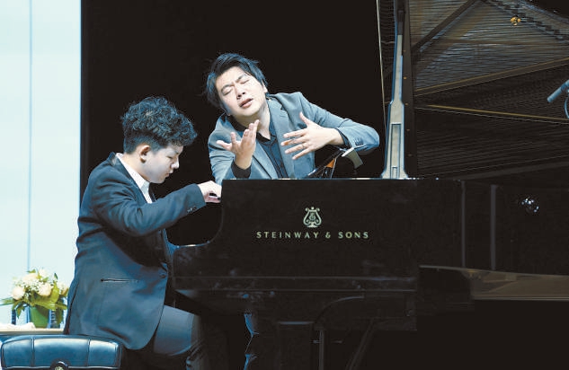 “很多人認(rèn)為,貝多芬早期的作品是在模仿海頓,但貝多芬這人從小就是個‘獅子’,一直都很有個性。”舞臺上,郎朗的音量伴著琴童的演奏提高,“一定要把他‘火山爆發(fā)’的脾氣彈出來,不能太溫和。這個地方使勁兒——好,對了!”講解到關(guān)鍵之處,郎朗的表情跟著雙手一起發(fā)力,眼睛瞪圓,原本打理得一絲不亂的頭發(fā)也被帶著顫動。臺下的觀眾們發(fā)出善意的輕笑,大家能明顯感覺到,經(jīng)過郎朗的指點(diǎn),那首起初彈得中規(guī)中矩的貝多芬《第三鋼琴奏鳴曲》果然有了更多動人的起伏。