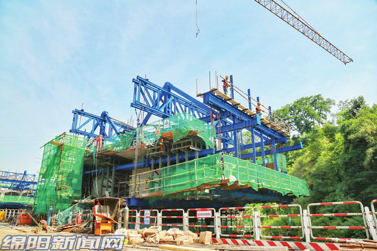 東西第二干道工程項(xiàng)目貫穿涪城區(qū)、科技城新區(qū)、科學(xué)城、游仙區(qū),道路設(shè)計(jì)全長(zhǎng)約8.9公里。高水中街拓寬段已完成,清水灣大橋已完成下部結(jié)構(gòu)和上部結(jié)構(gòu)施工,正在進(jìn)行主橋箱梁施工。老龍山隧道已掘進(jìn)483米,西山北路擋墻段已開工。