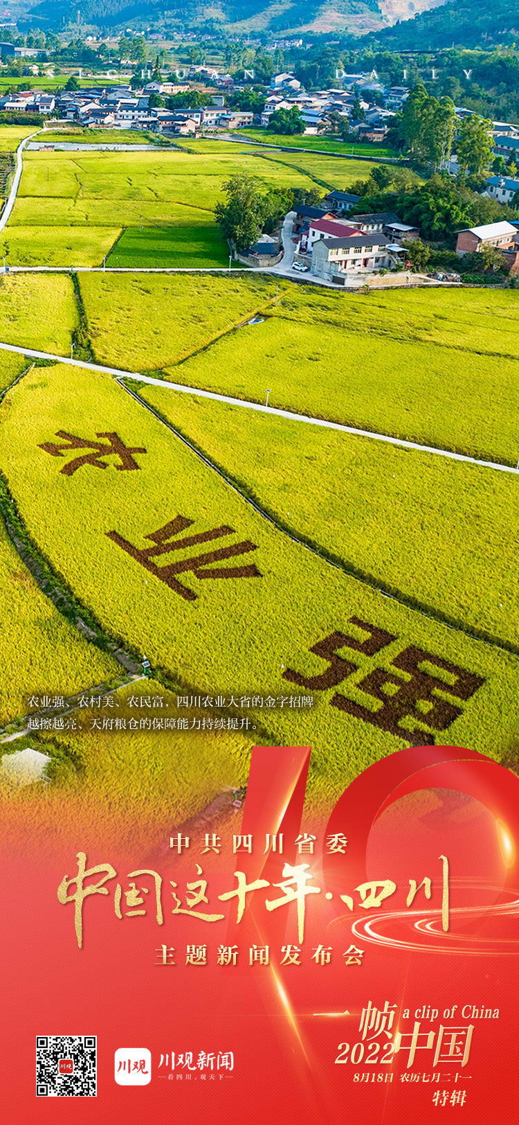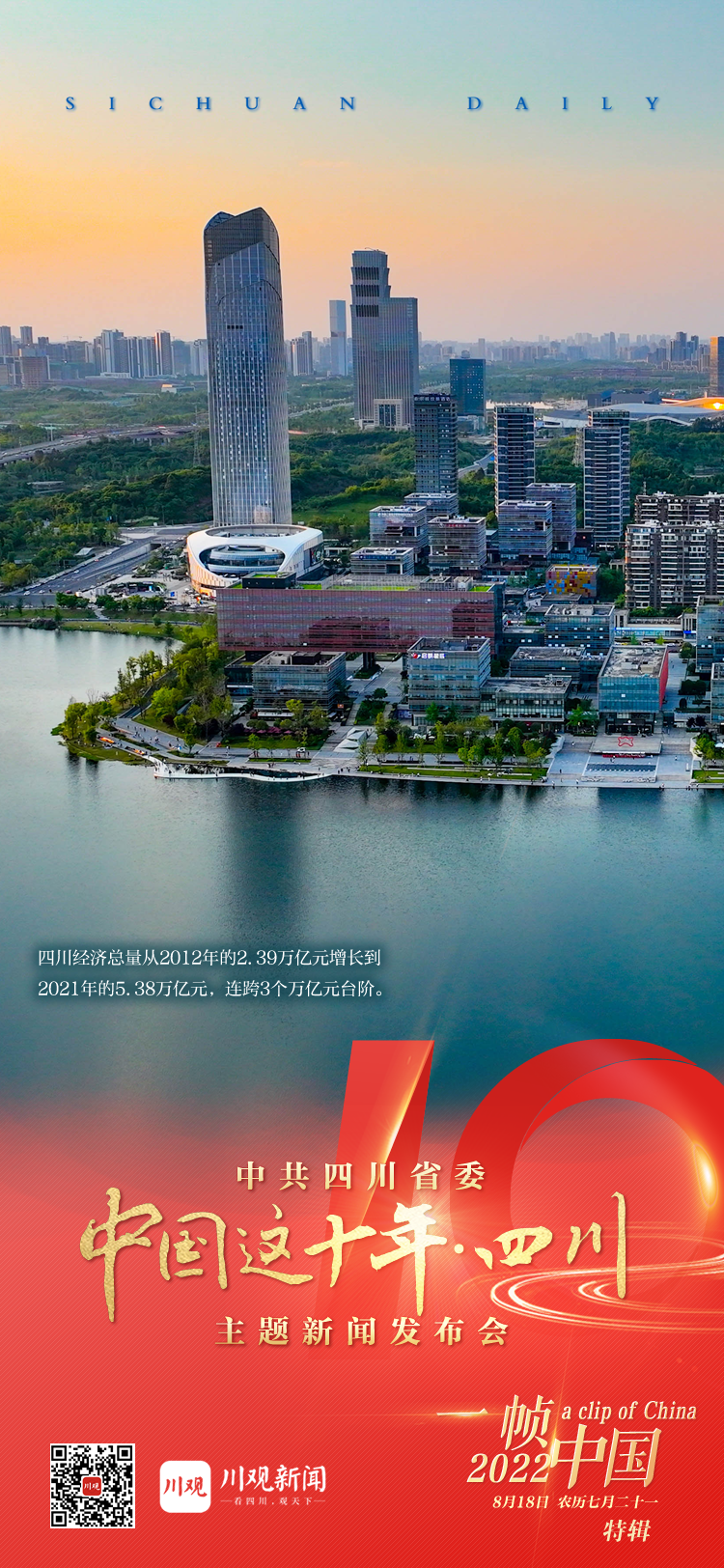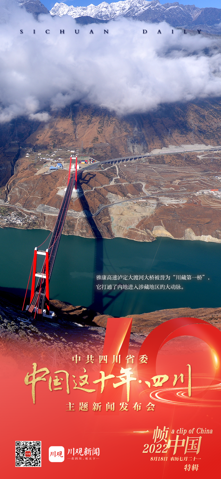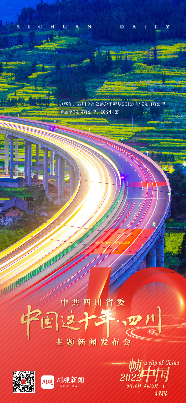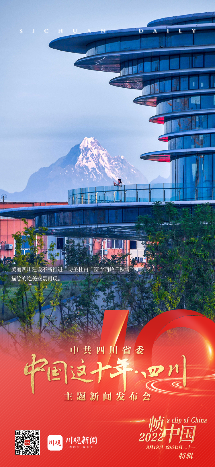 • 今天,川觀新聞“一幀中國”欄目推出“四川十年”特輯,用發(fā)布會(huì)上提到的一幅幅壯美畫卷、一個(gè)個(gè)精彩瞬間,帶你領(lǐng)略四川這些年取得的巨大成就。掃描海報(bào)上的二維碼,還可了解更多相關(guān)內(nèi)容。