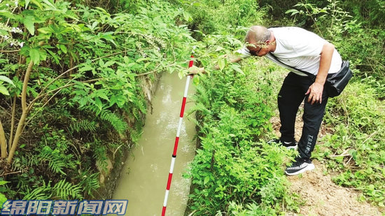 綿陽武引管理局工作人員測量灌區(qū)水位,檢查供水情況。(綿報融媒實習(xí)記者 王儻 攝)