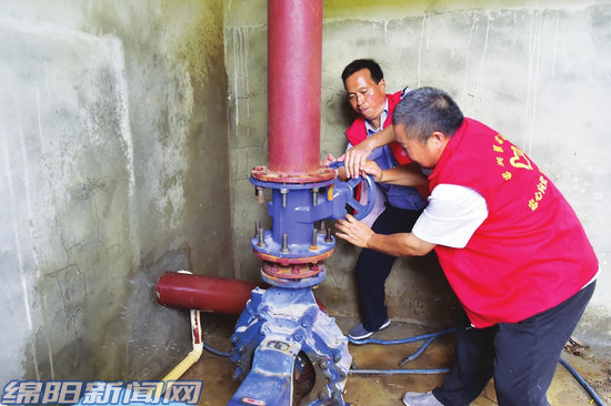 游仙區(qū)忠興鎮(zhèn)永佛村“堰塘水保姆”對紅旗提灌站設(shè)備進(jìn)行日常檢查維護(hù)。(綿報融媒記者 王勇 攝)