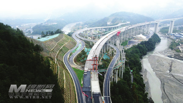 據(jù)了解,九綿高速平武涪江特大橋位于平武縣龍安鎮(zhèn),全長1771米,主橋跨度為85米+160米+160米+85米,最高高度為102.5米,是九綿高速全線跨度最長、高度最高的大橋,也是九綿高速公路全線最重要的控制性工程之一。