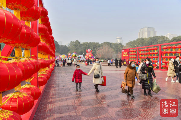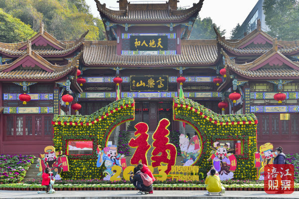 1月12日,記者在綿陽(yáng)城區(qū)人民公園、西山公園、富樂山公園、南山公園看到,裝扮一新的公園洋溢著喜慶祥和的節(jié)日氣氛,除了“玉兔”迎春的花卉造型,還有數(shù)萬盞大紅燈籠,各種鮮花將公園裝點(diǎn)得喜氣洋洋,新春的氛圍越來越濃厚。