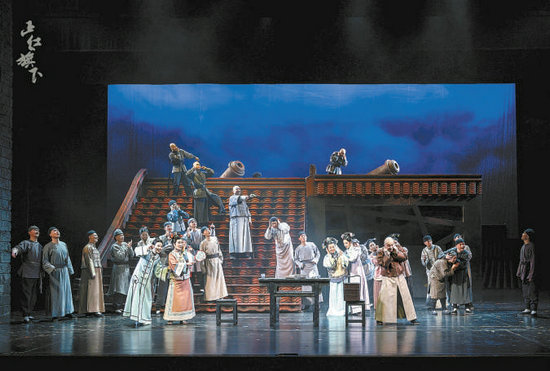 劇中充滿(mǎn)戲曲元素的舞臺(tái)表現(xiàn)手法,散點(diǎn)、群像式結(jié)構(gòu),既有獨(dú)特創(chuàng)新,也讓人想到焦菊隱先生對(duì)“中國(guó)話劇民族化”的藝術(shù)探索,以及林兆華導(dǎo)演“戲別太像戲”的藝術(shù)主張。這種具有濃郁中國(guó)民族情調(diào)的抒情寫(xiě)意風(fēng)格,傳遞出老舍的家國(guó)情懷和其作品充滿(mǎn)詩(shī)意的文學(xué)性。