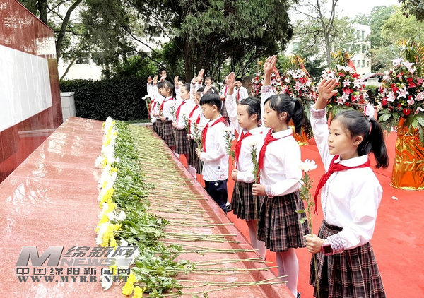 少先隊員瞻仰革命烈士紀(jì)念碑,敬獻(xiàn)鮮花?! ?綿報融媒記者 陳冬冬 攝)