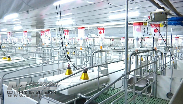 在鵝溪鎮(zhèn)劍河村新希望公司豬場(chǎng)的圈舍里,自動(dòng)化喂料飲水系統(tǒng)、自動(dòng)控溫系統(tǒng)、自動(dòng)清糞系統(tǒng)、環(huán)控系統(tǒng)等配套設(shè)施一應(yīng)俱全。