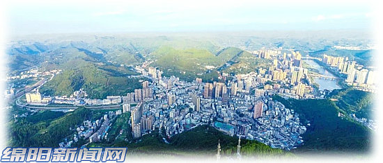 群山環(huán)抱、綠水環(huán)繞的鹽亭縣城