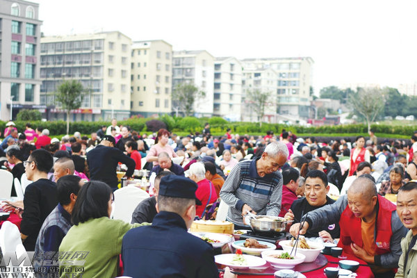 10月23日中午,北川羌族自治縣擂鼓鎮(zhèn)郭牛村村委會(huì)壩子邊,一場(chǎng)重陽(yáng)節(jié)壩壩宴正在進(jìn)行。
