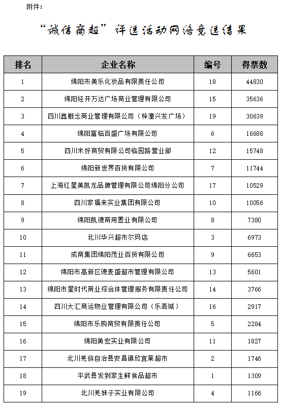 附件:“誠(chéng)信商超(酒店、餐飲)”評(píng)選活動(dòng)網(wǎng)絡(luò)競(jìng)選結(jié)果