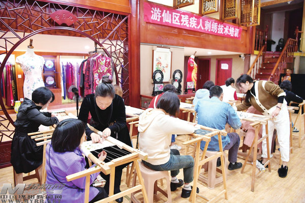 綿陽新聞網(wǎng)訊 窗外細(xì)雨霏霏,室內(nèi)飛針走線,近日,在游仙區(qū)殘聯(lián)主辦的殘疾人刺繡技能免費(fèi)培訓(xùn)班上,10余位學(xué)員正在西蜀傳統(tǒng)刺繡工藝非遺傳承人周靜老師的精心指導(dǎo)下認(rèn)真學(xué)習(xí)蜀繡技法。