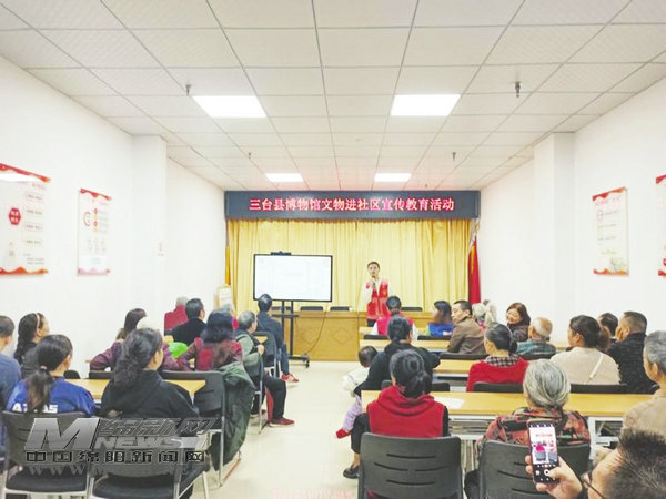 在社區(qū)會議室,志愿者深入淺出地向到場的居民講解三臺縣博物館目前館藏的文物,生動形象的語言,接地氣的傳播方式,讓居民們耳濡目染地接受了歷史文化知識。