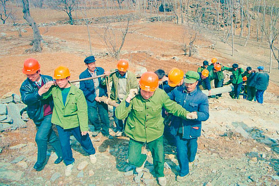 1994年,臨沂打響村村通電攻堅戰(zhàn)。當(dāng)電力部門要給扁擔(dān)山村架電時,全村老少欣喜得不得了。由于山高路陡,現(xiàn)代化的機械用不上,村里出義務(wù)工,跟電力工人一起手抬肩扛,把一根根半噸重的水泥桿一步步拖到山坡,用雙手把電桿架上了險坡峻嶺,拉起了一道道輸電線。