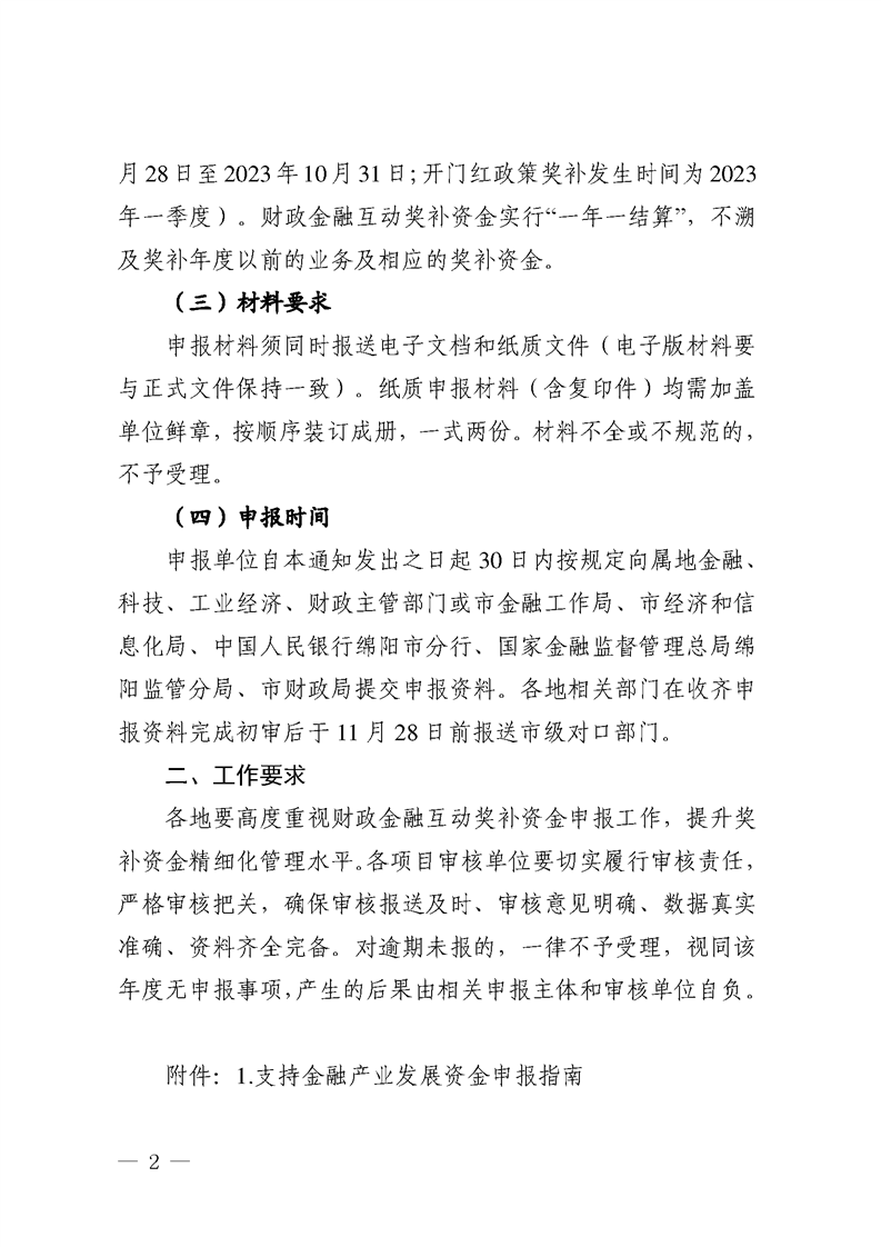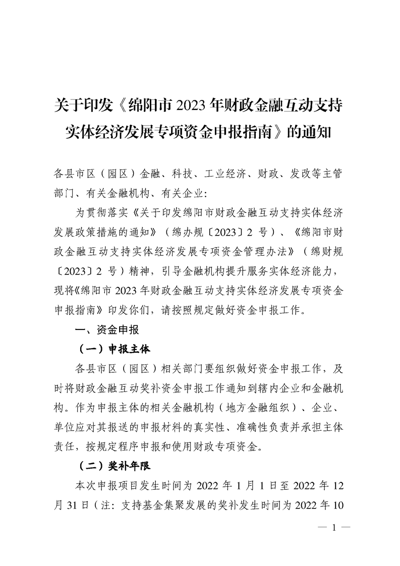 關(guān)于印發(fā)《綿陽(yáng)市2023年財(cái)政金融互動(dòng)支持實(shí)體經(jīng)濟(jì)發(fā)展專(zhuān)項(xiàng)資金申報(bào)指南》的通知