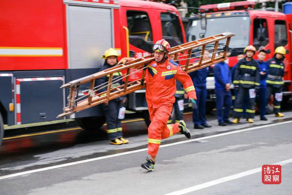 拼速度、拼耐力、拼時(shí)間、拼操作,消防指戰(zhàn)員們揮汗如雨,你追我趕、奮力拼搏。