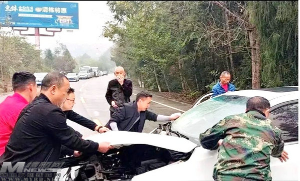 現(xiàn)場,黃義波指揮過往車輛避讓,金禾和趕到的路人對(duì)駕駛員以及乘客開展救援,他們先將司乘人員扶出車,同時(shí)將事故車輛推到安全地帶。為了防止車輛發(fā)生二次事故,黃義波還利用在部隊(duì)學(xué)到的知識(shí)及時(shí)將車輛電源斷開。