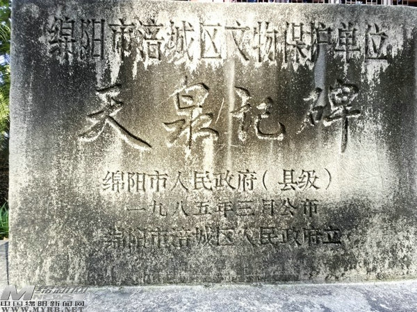 在《天泉記》碑刻的背面,還有兩段不同內容的文字。其中,碑的中上部是嘉靖辛丑年(1541年)刻的《名賢遺詠》,碑額“名賢遺詠”為篆書,字跡清晰,但正文多數(shù)因風化模糊不可辨識。在碑的下部,則是清同治五年(1866年)綿州人吳開聰重豎《天泉記》碑的跋語,對“天泉記”碑的起源及修補經過予以簡略記述。