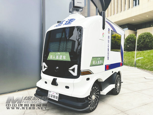先來看酷酷的警用無人巡邏車。當(dāng)天下午2時(shí)許,在綿陽國際會展中心D展館旁的道路上,一輛警用無人巡邏車正勻速行駛,它旁邊還跟著一個(gè)“小兄弟”。